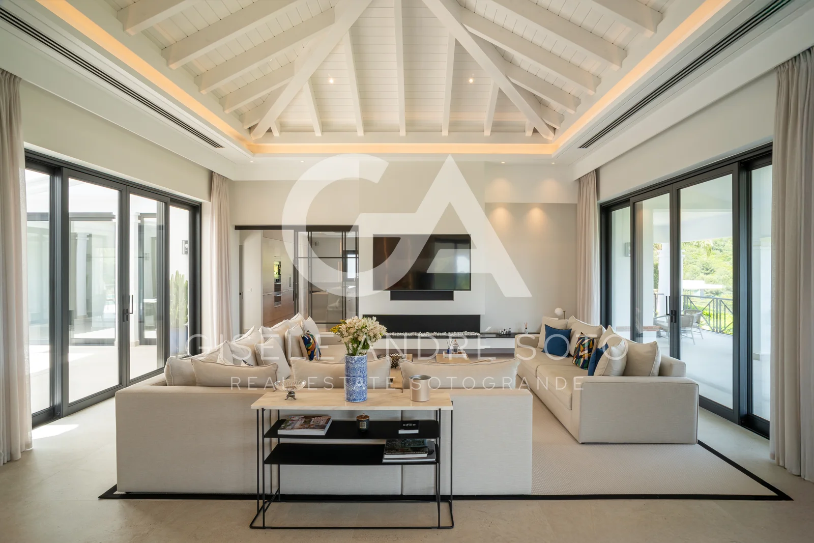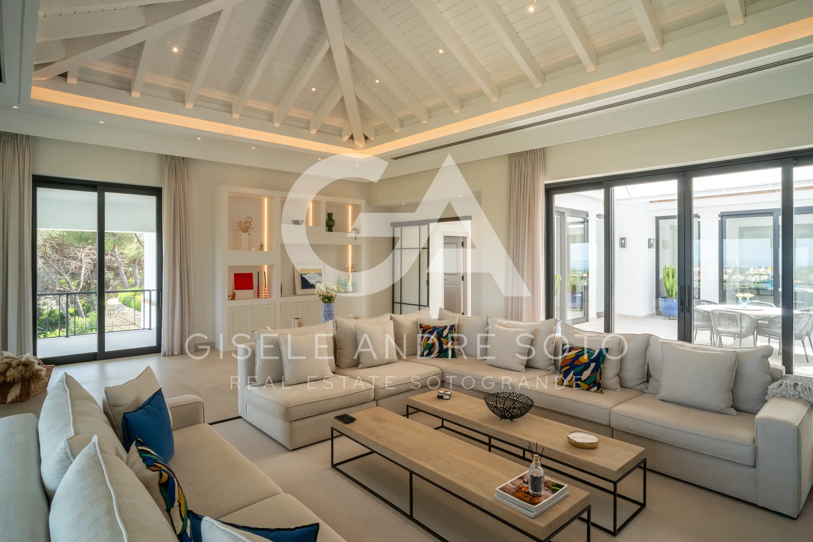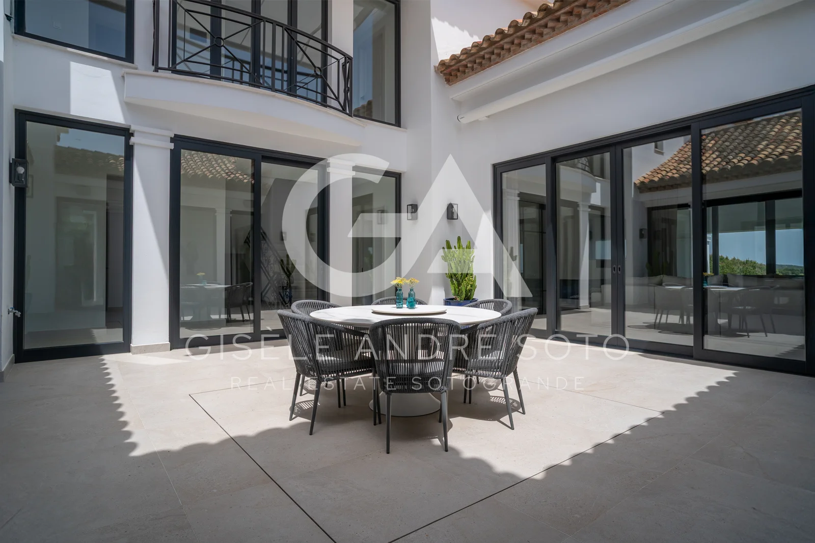Discover an extraordinary 6-bedroom villa, a newly refurbished masterpiece of modern architecture nestled within the exclusive La Reserva, overlooking the prestigious La Reserva Golf Course. Crafted for discerning high-net-worth individuals, this residence redefines luxury through its fusion of sophisticated design, expansive living spaces, cutting-edge domotic technology, and a 10kW solar panel system for self-sufficient eco-friendly living, all set against breathtaking golf and ocean vistas.