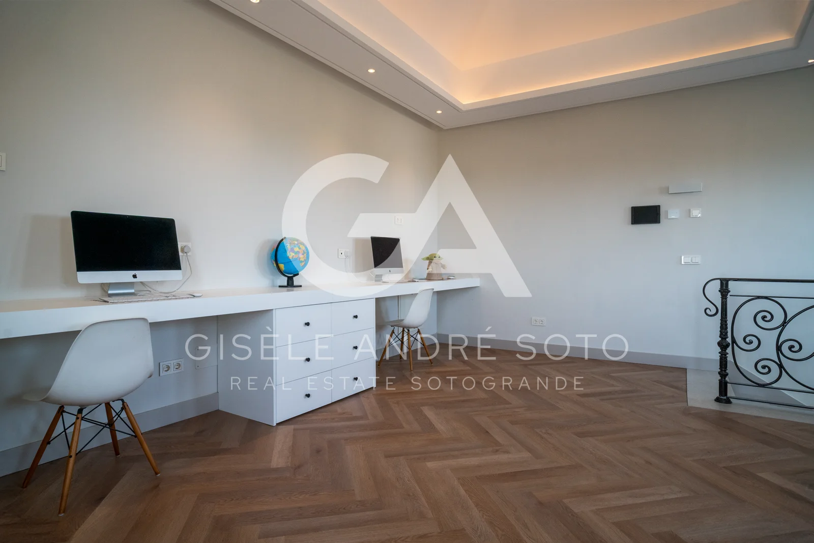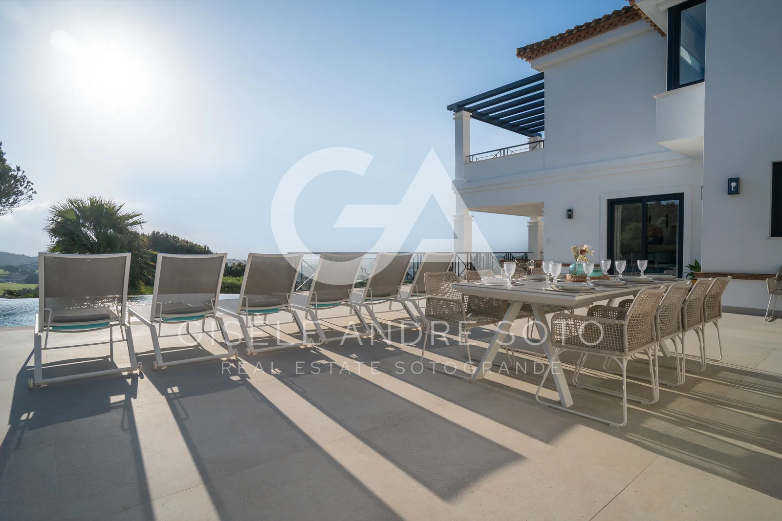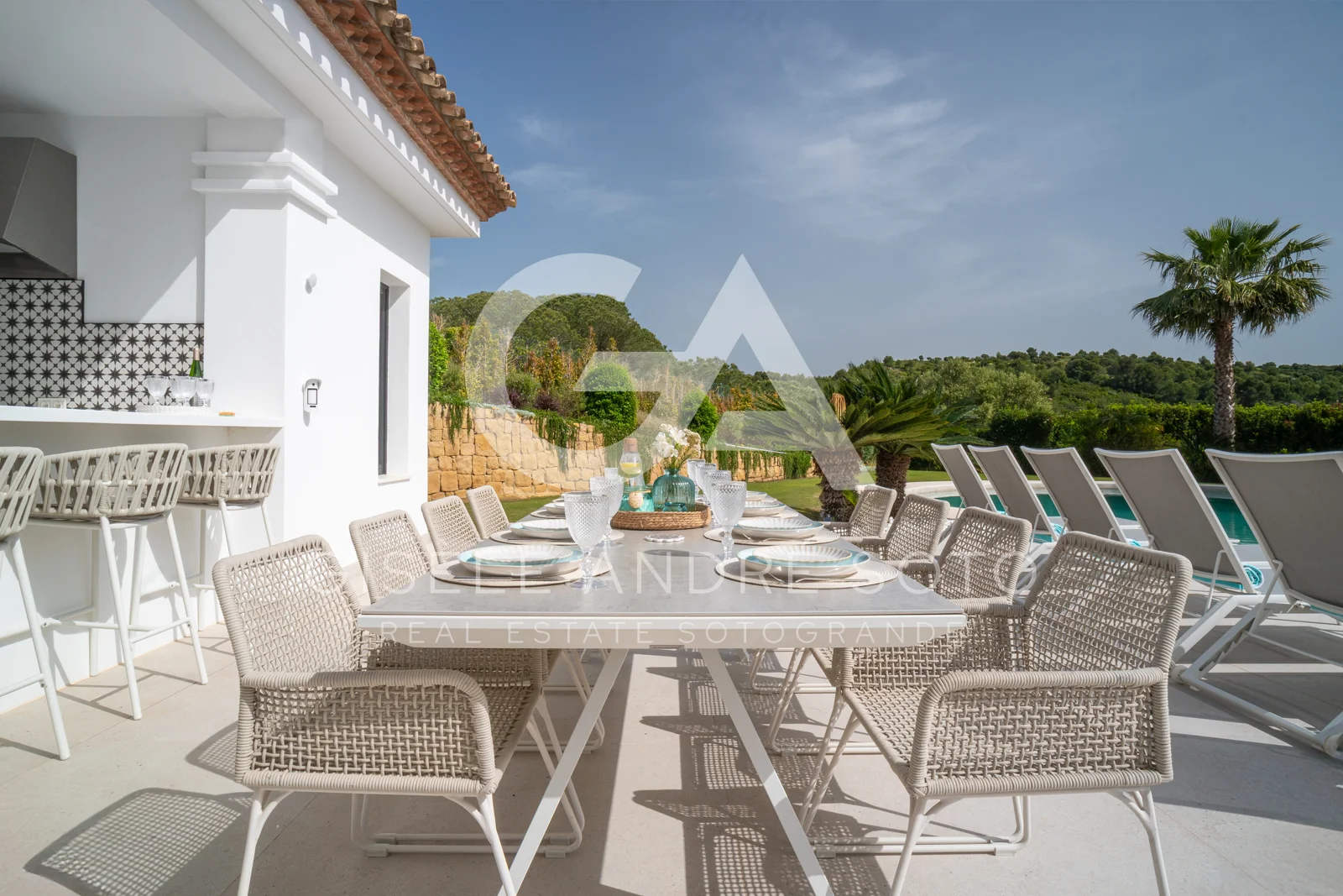 Discover an extraordinary 6-bedroom villa, a newly refurbished masterpiece of modern architecture nestled within the exclusive La Reserva, overlooking the prestigious La Reserva Golf Course. Crafted for discerning high-net-worth individuals, this residence redefines luxury through its fusion of sophisticated design, expansive living spaces, cutting-edge domotic technology, and a 10kW solar panel system for self-sufficient eco-friendly living, all set against breathtaking golf and ocean vistas.