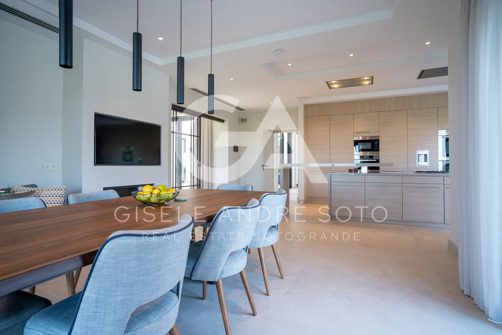 Set on a sprawling 3,693 m² plot with a 975 m² built area, this south-southeast-oriented villa captures optimal sunlight and panoramic views of the iconic La Reserva Golf Course and lush Mediterranean landscape. Floor-to-ceiling Roman Clavero windows with integrated sensors flood the interiors with natural light, seamlessly blending indoor refinement with outdoor splendour. Expansive 148 m² terraces, featuring a sleek Corian outdoor kitchen and entertainment area, elevate al fresco living to an art form, perfect for sophisticated gatherings or serene relaxation.